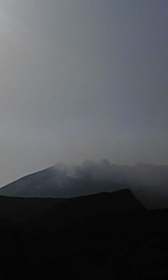 絶賛噴煙中なんだけど逆光でよく分からないのが残念